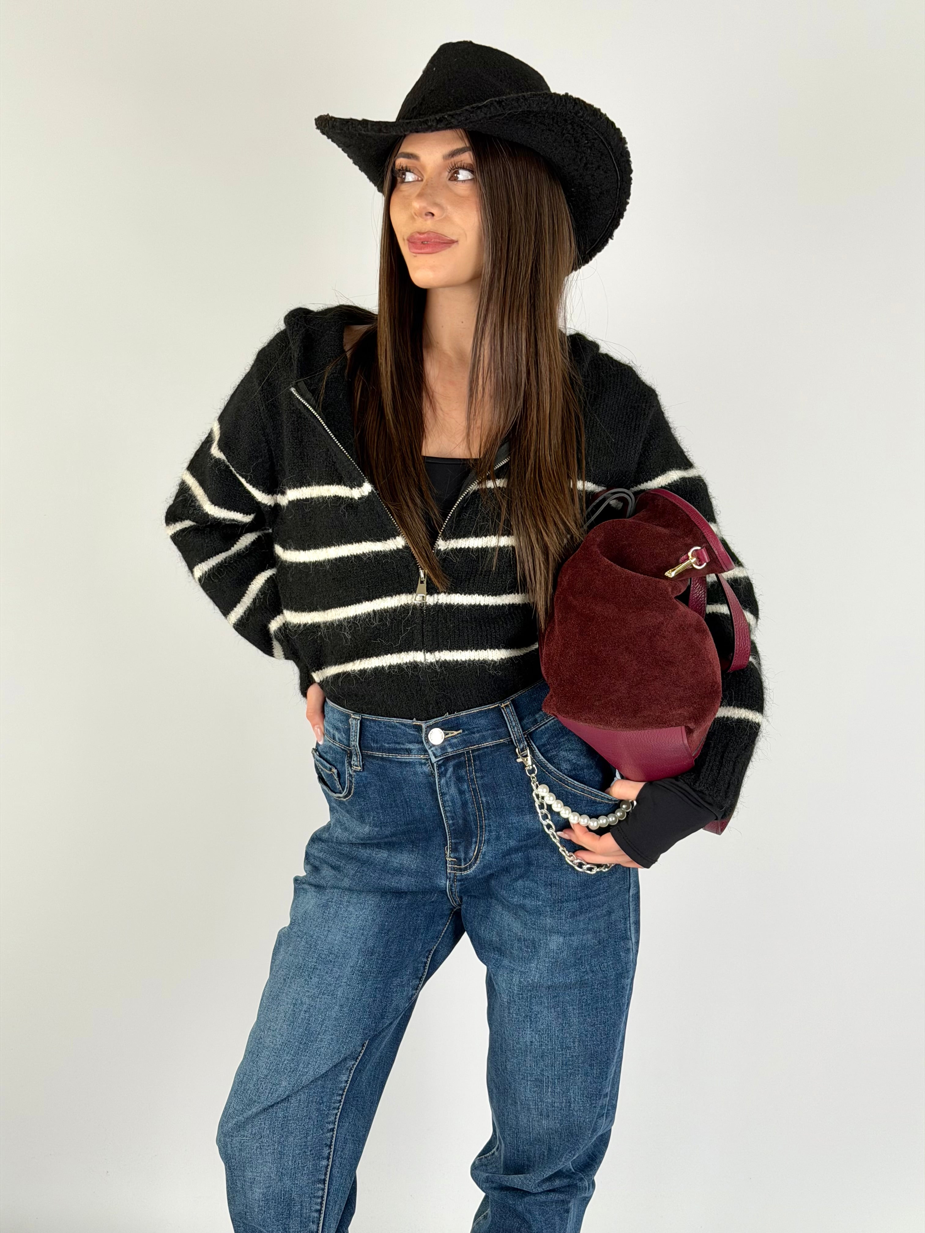 Maglia gioiello righe bordeaux
