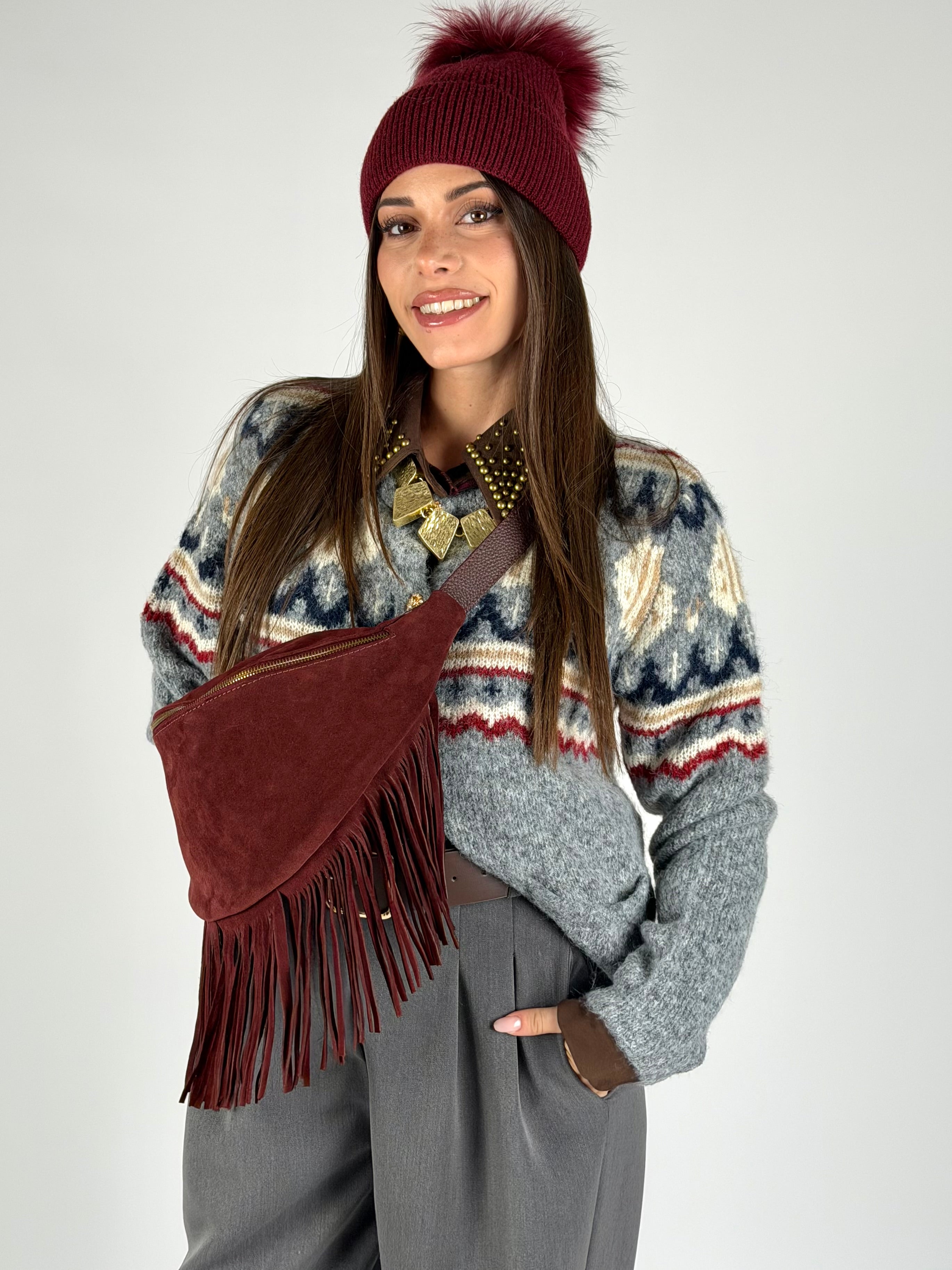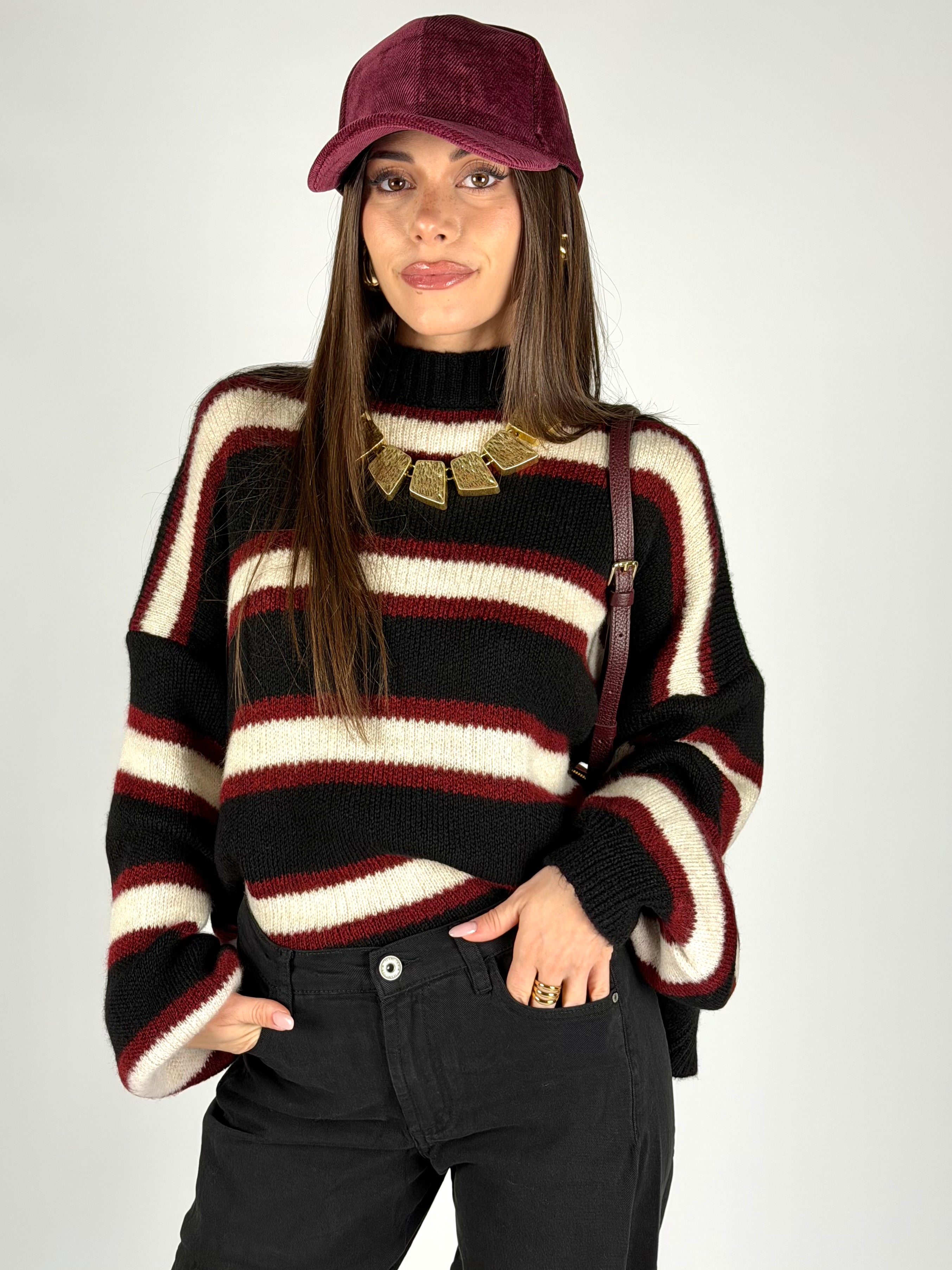 Maglione zig zag bordeaux