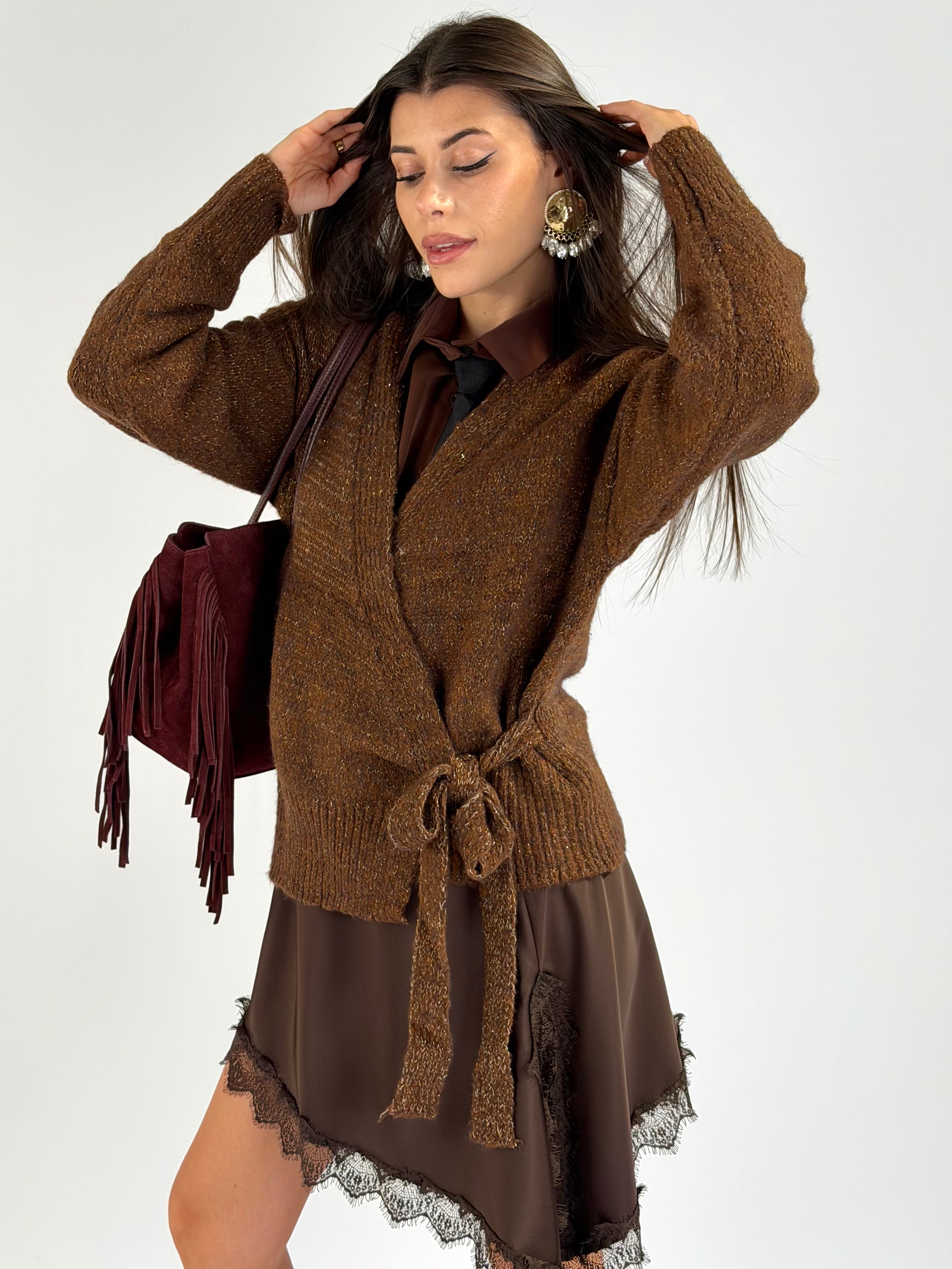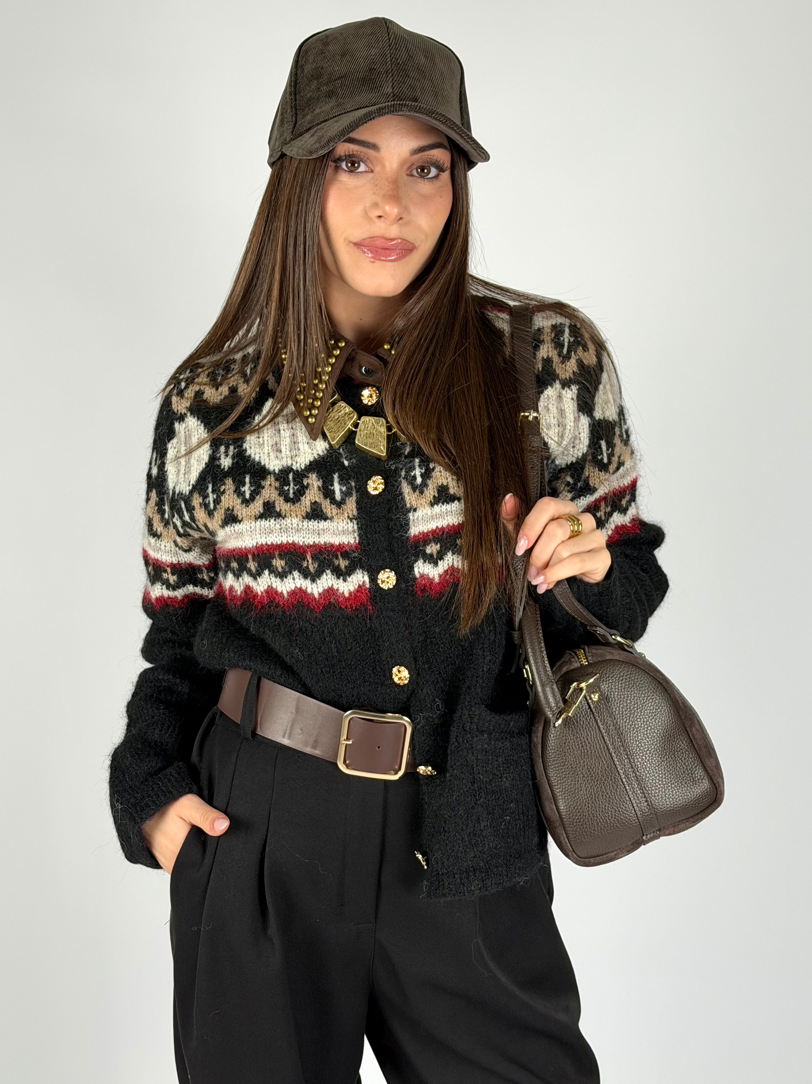 Maglia Cardigan bottoni treccia moro
