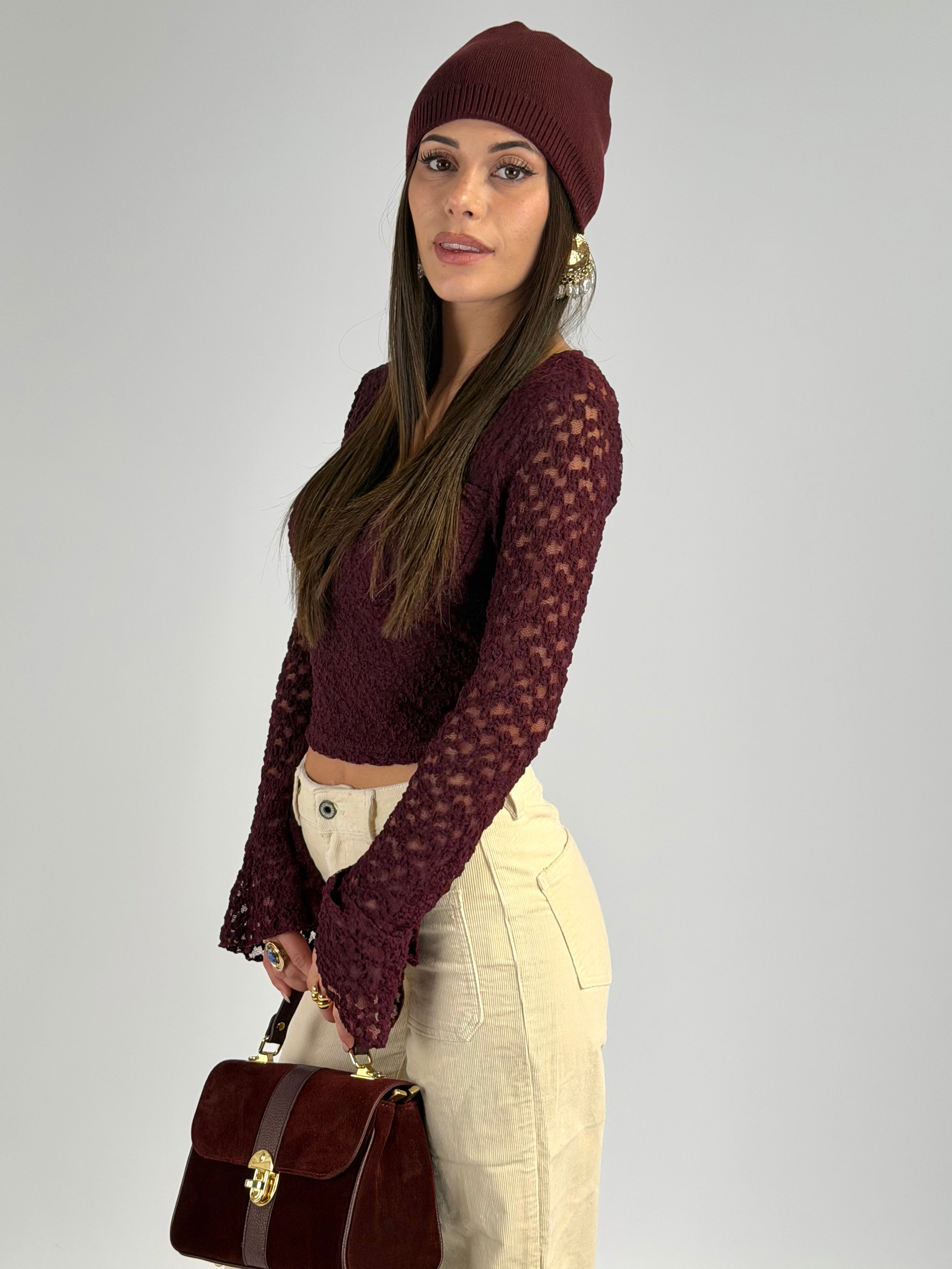 Maglia con pizzo sotto bordeaux