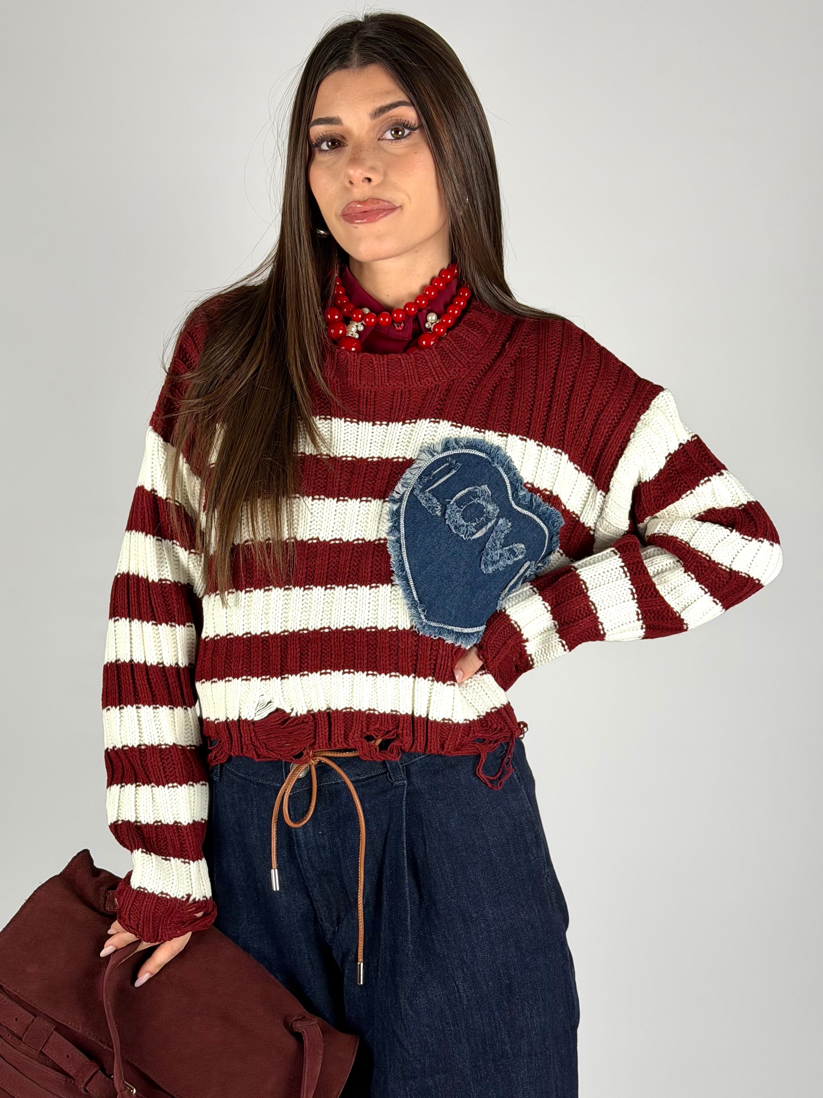 Maglia cuore denim bordeaux