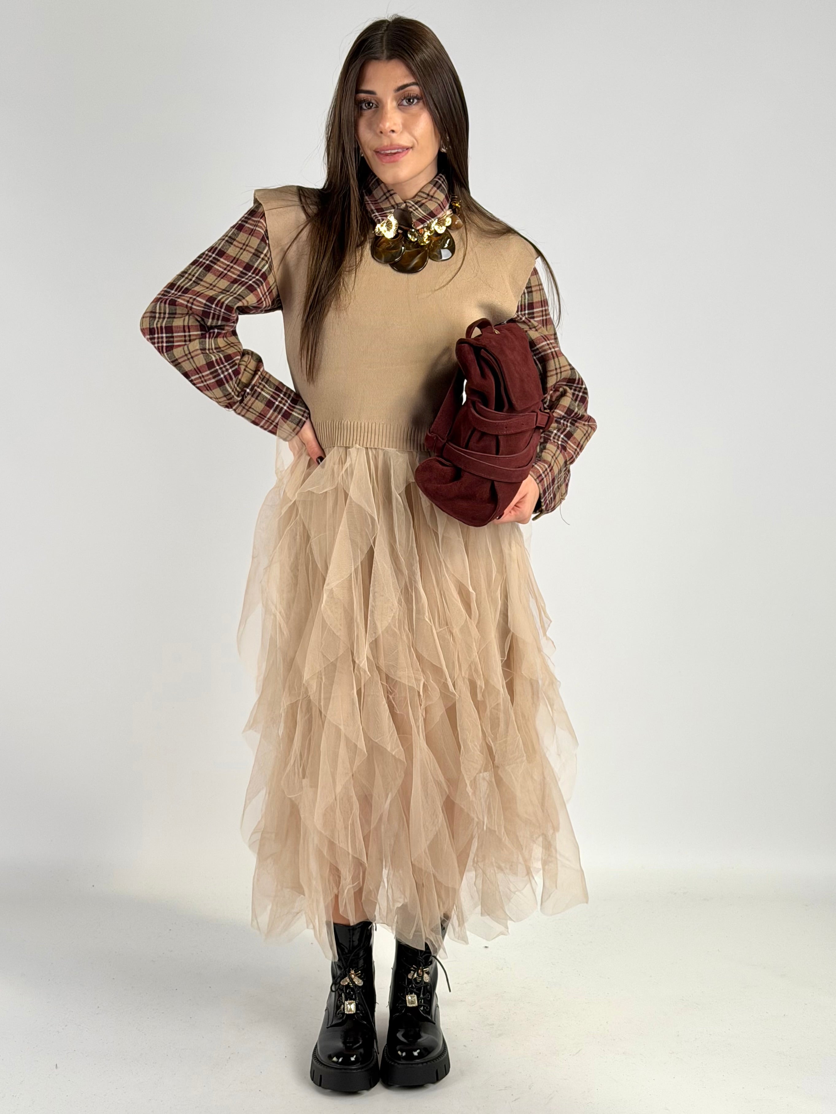 Abito Sissy check tabacco